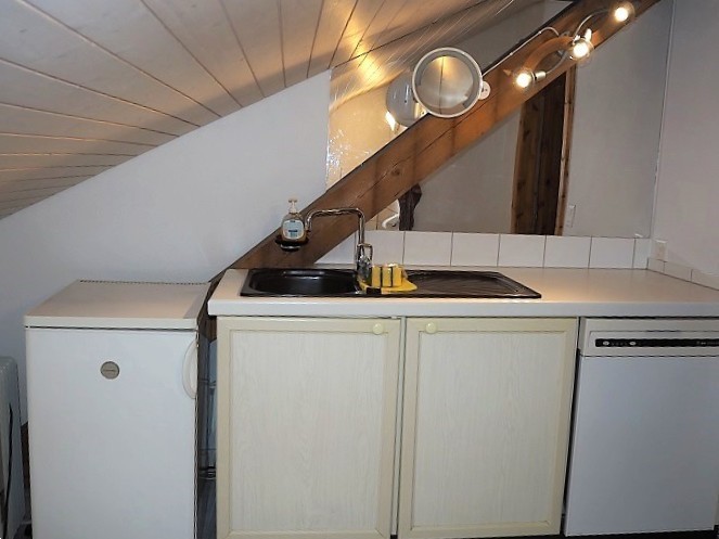 - Teeküche mit Geschirrspüler, freistehendem Kühlschrank und Lavabo