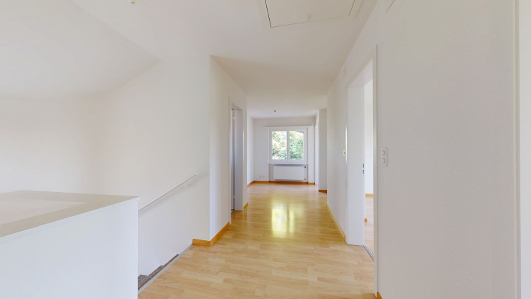 Im oberen Stockwerk befinden sich drei helle und gut geschnittene Zimmer, die vielseitig nutzbar sind ob als Kinder-, Schlaf- oder Arbeitszimmer. Ein Badezimmer mit Badewanne sowie ein separates WC sind ebenfalls vorhanden. Vom Obergeschoss gelangen Sie, mittels einer Treppe, in den Estrich, welcher vielseitig genutzt werden kann.