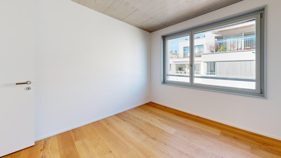 Der moderne Neubau bietet klare Architektur und nachhaltige Bauweise mit Fokus auf Wohnqualität und Komfort. Die bergseitige Ausrichtung sorgt für Ruhe und Erholung, während eines der Zimmer einen einzigartigen Blick über die Stadt Zürich eröffnet.